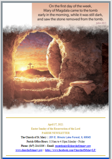 Church of St. Mary Parish Newsletter for April 17, 2022: Easter Sunday of the Resurrection of the Lord.