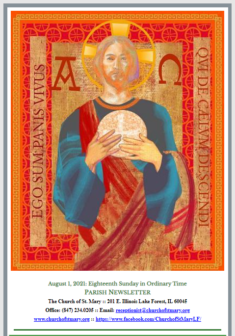 August 1, 2021: Eighteenth Sunday in Ordinary Time Jul 30 Written By Rebecca Quackenbush Church of St. Mary Parish Newsletter for August 1, 2021: Eighteenth Sunday in Ordinary Time. Rebecca Quackenbush