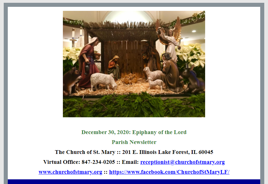 December 30, 2020: Epiphany of the Lord Dec 30 Written By Rebecca Quackenbush Church of St. Mary Parish Newsletter for December 30, 2020: Epiphany of the Lord. Rebecca Quackenbush