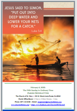 February 6, 2022:The Fifth Sunday in Ordinary Time Feb 4 Written By Rebecca Quackenbush Church of St. Mary Parish Newsletter for February 6, 2022: The Fifth Sunday in Ordinary Time. Rebecca Quackenbush