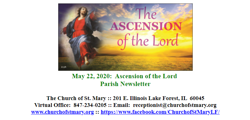 May 24, 2020: Ascension of the Lord May 22 Written By Rebecca Quackenbush Church of St. Mary Parish Newsletter for May 24, 2020: Ascension of the Lord. Rebecca Quackenbush