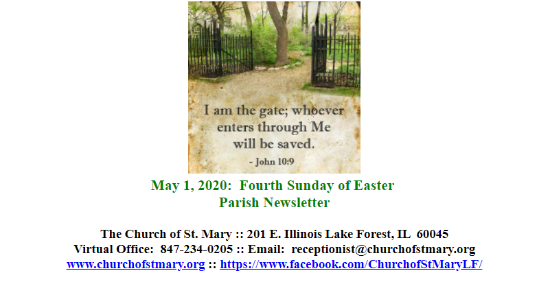 May 3, 2020: Fourth Sunday of Easter May 1 Written By Rebecca Quackenbush Church of St. Mary Parish Newsletter for May 3, 2020: Fourth Sunday of Easter. Rebecca Quackenbush