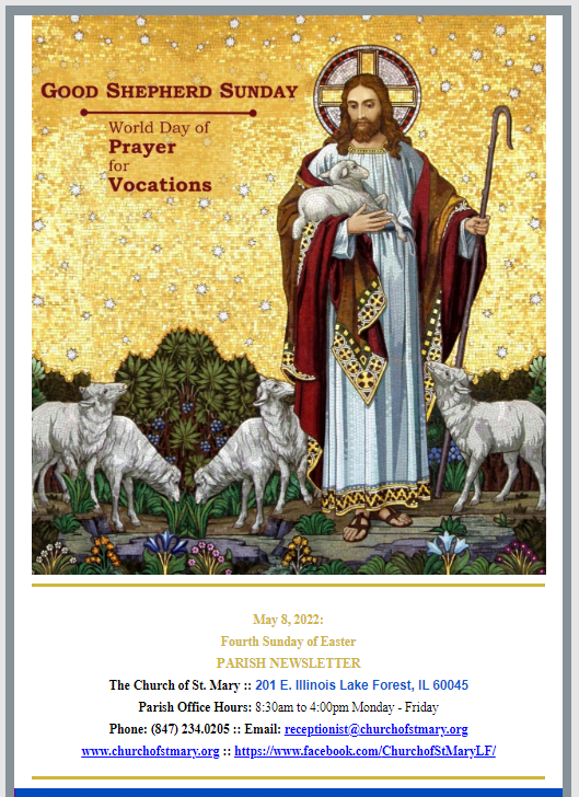 May 8, 2022:Fourth Sunday of Easter May 6 Written By Rebecca Quackenbush Church of St. Mary Parish Newsletter for May 8, 2022: Fourth Sunday of Easter. Rebecca Quackenbush